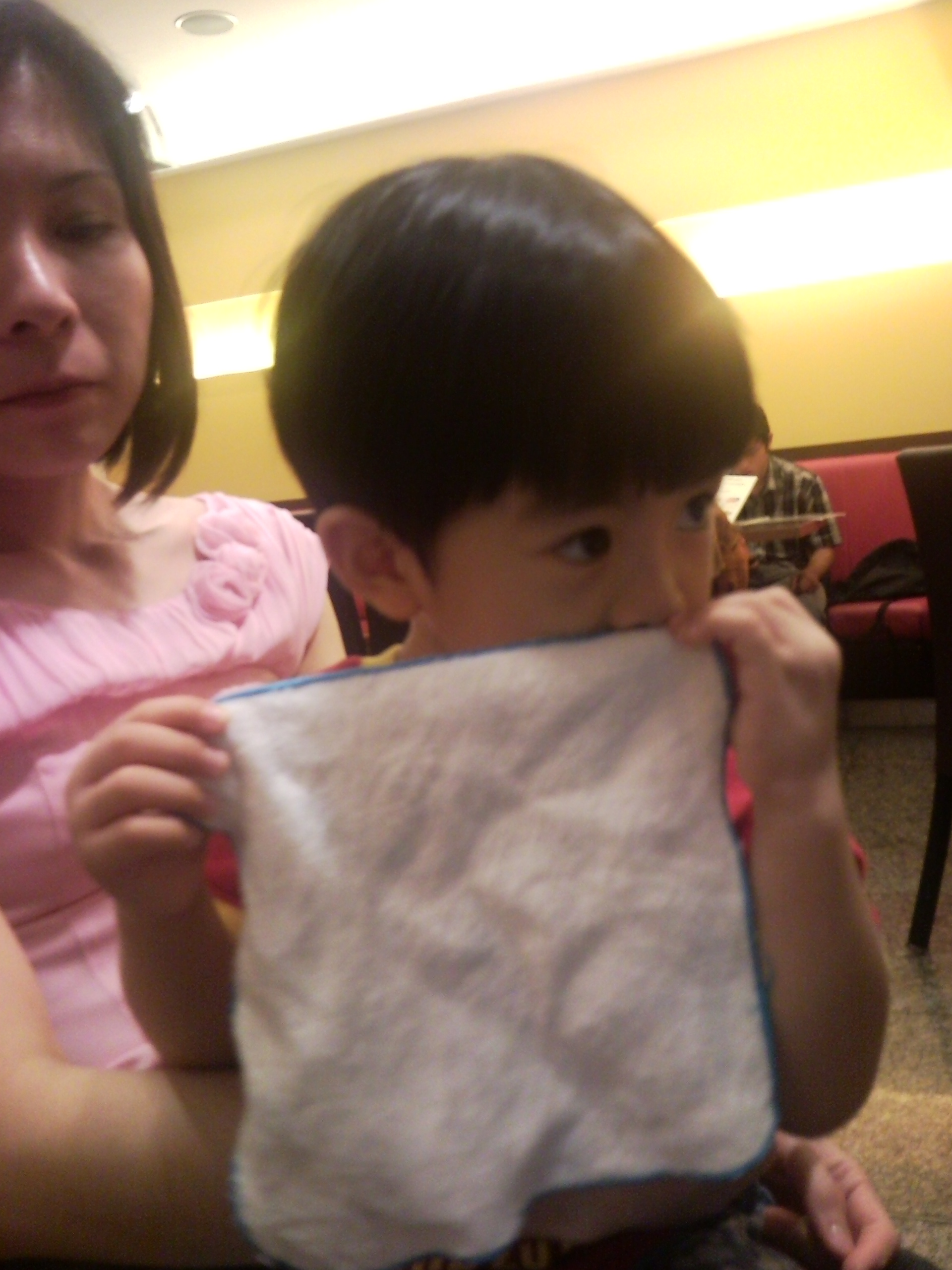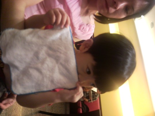 look at him smelling at his hanky!!he knows how to do “米米眼”! kawaii le!!! and whenever i ask him “kaeden xiang xiang or chou chou?” he will say “xiang xiang”!!! So cute right!!hees