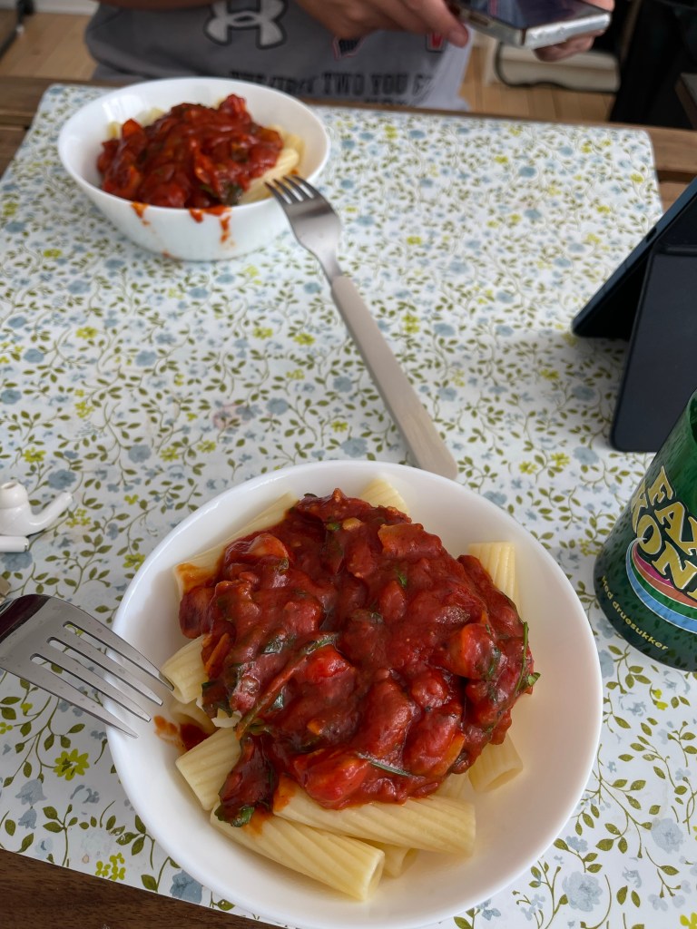 On the side note, Husband made his first pasta! He cooked for the first time and I am so so so so so PROUD of him. And it does taste pretty good. I mean like not delish but nice edible good for someone who has never been inside the kitchen to cook before.